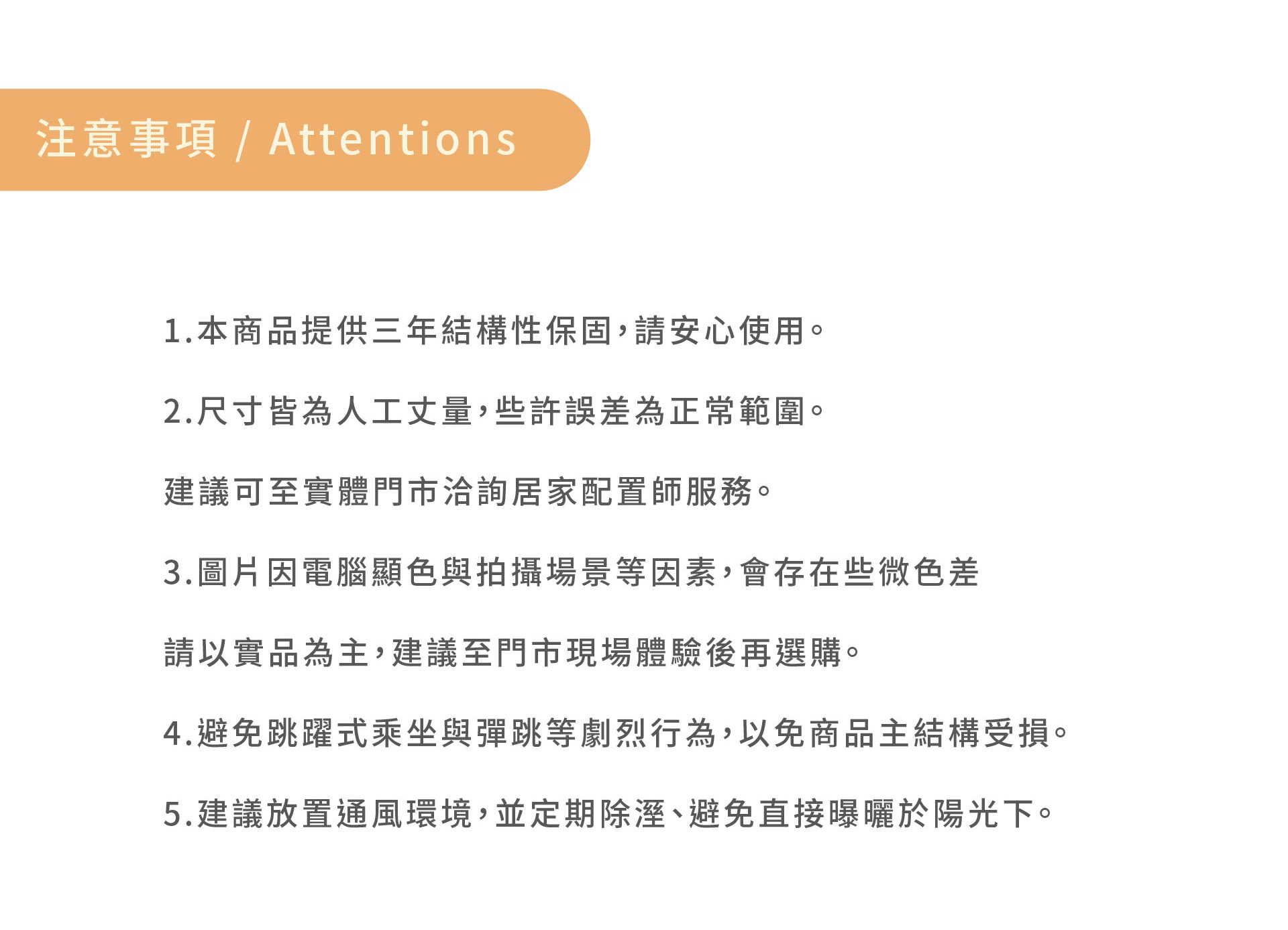 中大型家具實際到貨時間為四個月